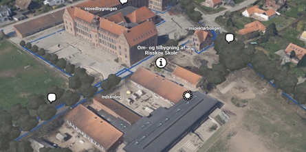 I den digitale 3D-model af ud- og ombygningen af Risskov Skole kan du se projektet fra flere vinkler, sol og skygger på forskellige tidspunkter af døgnet og meget mere.